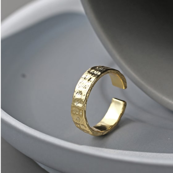 This ring is great! An inexpensive piece that looks great with my other gold jewelry. Love that you can adjust it, as buying a ring size online is not easy. The gold is a perfect real gold color, and doesn't look cheap. Also very comfortable!