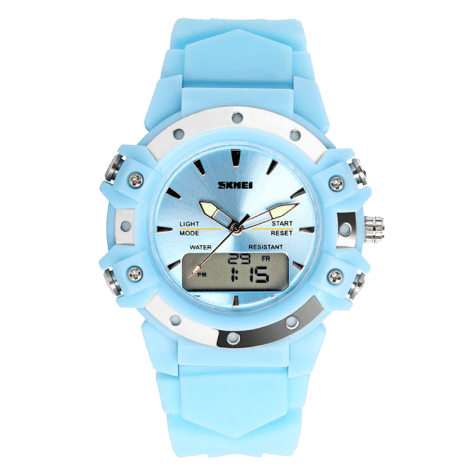 Kids’ digital electronic sports wrist watch that displays time directly with numbers. It is clear and intuitive, and kids can read the time easily and precisely.
