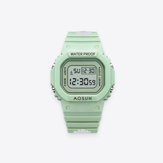 Bought this to pair with a nice flower-patterned dress. It is for a six-year old therefore, it's easier than an analog watch with different hands for hours, seconds etc.