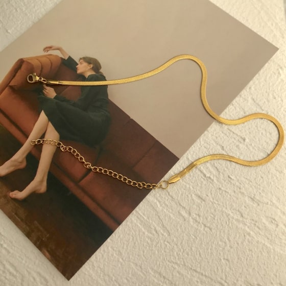 Honestly my hopes weren't high for this, I was purchasing it more so for a halloween costume this year.. BUT low and behold, it's actually a really good quality necklace! It's thick enough, but not too heavy. And doesn't look like costume jewelry. This has become a go-to neck piece for me.. I feel naked without it. Good length. Cost friendly. Very good packaging. 5 stars item!