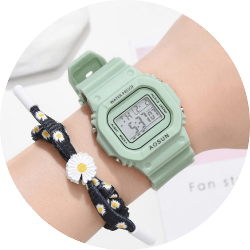 This watch is really cute. It’s smaller than I thought it would be based on the picture. The one thing that most bothers me about this watch is that the screen scratches pretty easily.