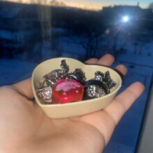 I bought these to use as ring dishes, and they are amazing. I have one in my car, one beside all of the sinks in the house, one on my makeup vanity, and one in the exercise/laundry room... basically, everywhere that I might want to remove my ring for safekeeping from soaps, cleaners, sweat, or grime. I know they're soy sauce dishes and I'm sure they are fantastic for that job, too - but they're even better ring holders! Adorable and perfect! I've received numerous inquiries about where to find them—they're just that cute!