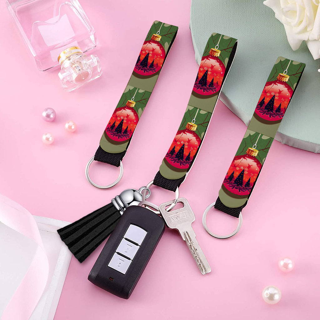 Holiday Season Keychain Wristlet is made of neoprene, not easy to break; The colorful tassels are made of patterned thread, strong and durable; The swivel snap hooks are made of quality zinc alloy, which is strong and easy to clean.