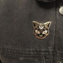 Beautiful cat pin. It is detailed and we'll done. I was pleasantly surprised at how perfect It is! It has 2 very sturdy fasteners on back!