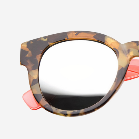 Stand out from the crowd in these two-toned horn-rimmed sunglasses. These fun sunglasses are designed with a block tortoise printed front frame and contrasting translucent temples in vibrant hues.
