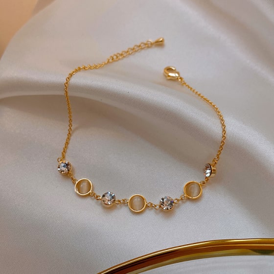 Our long-time priority is to make sure that our customers are happy with our products. Try this incredible piece of jewellery and see for yourself. Jewelry materials: brass. Shape: adjustable round bracelet with opal-like beads. Color: golden. Gender: Unisex.
