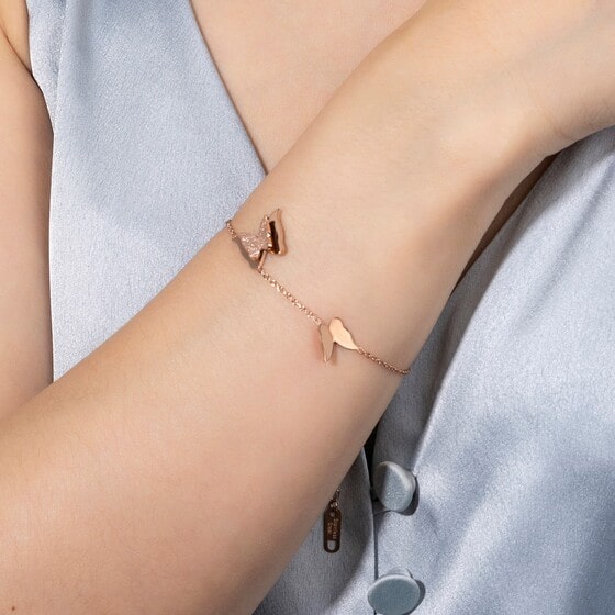 This bracelet with butterfly pendants carries a strong meaning and is a great accessory to highlight the gracefulness and delicacy of a lady’s wrist.